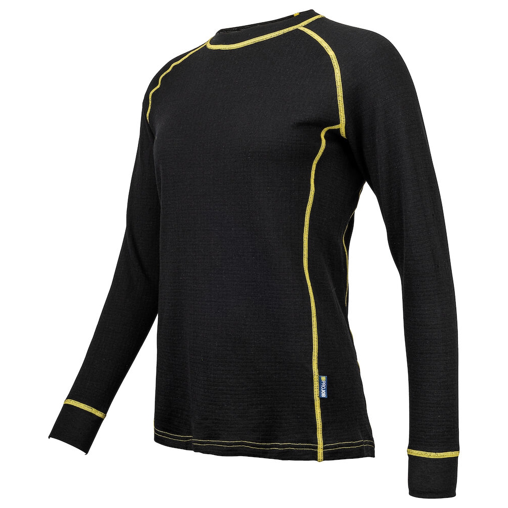 térmica con cuello redondo de mujer en lana merino que mantiene el cuerpo cálido y seco en condiciones climáticas frías. tejido suave y elástico para una mayor libertad de movimientos. espalda alergada. puños en mangas.
