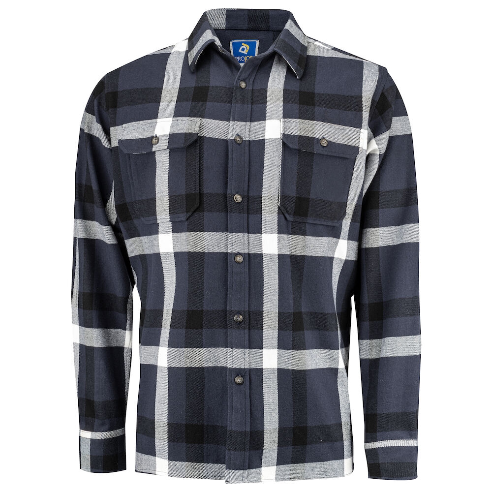 camisa de franela con 2 grandes bolsillos frontales con tapeta. puño ajustable con 2 botones.