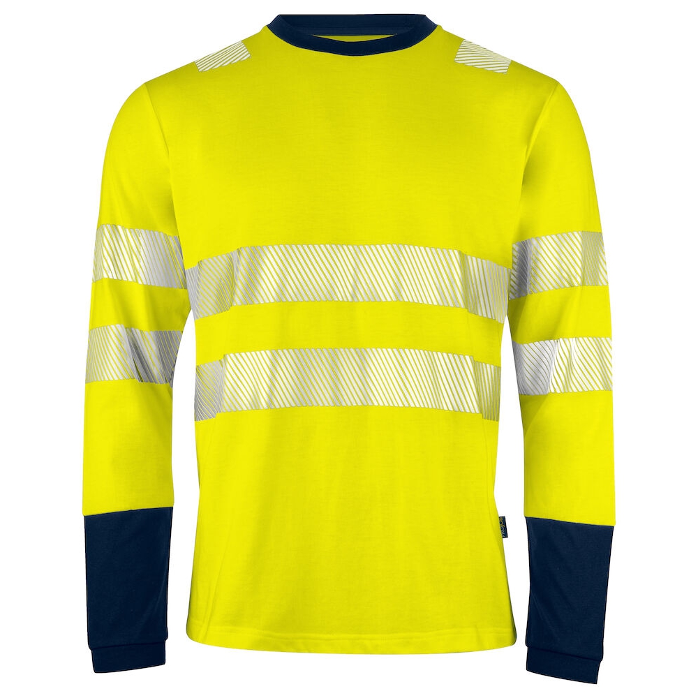 camiseta de manga larga en poliéster/algodón. color en contraste en los extremos de las mangas para proteger contra la suciedad. segmentos reflectantes a 3m.