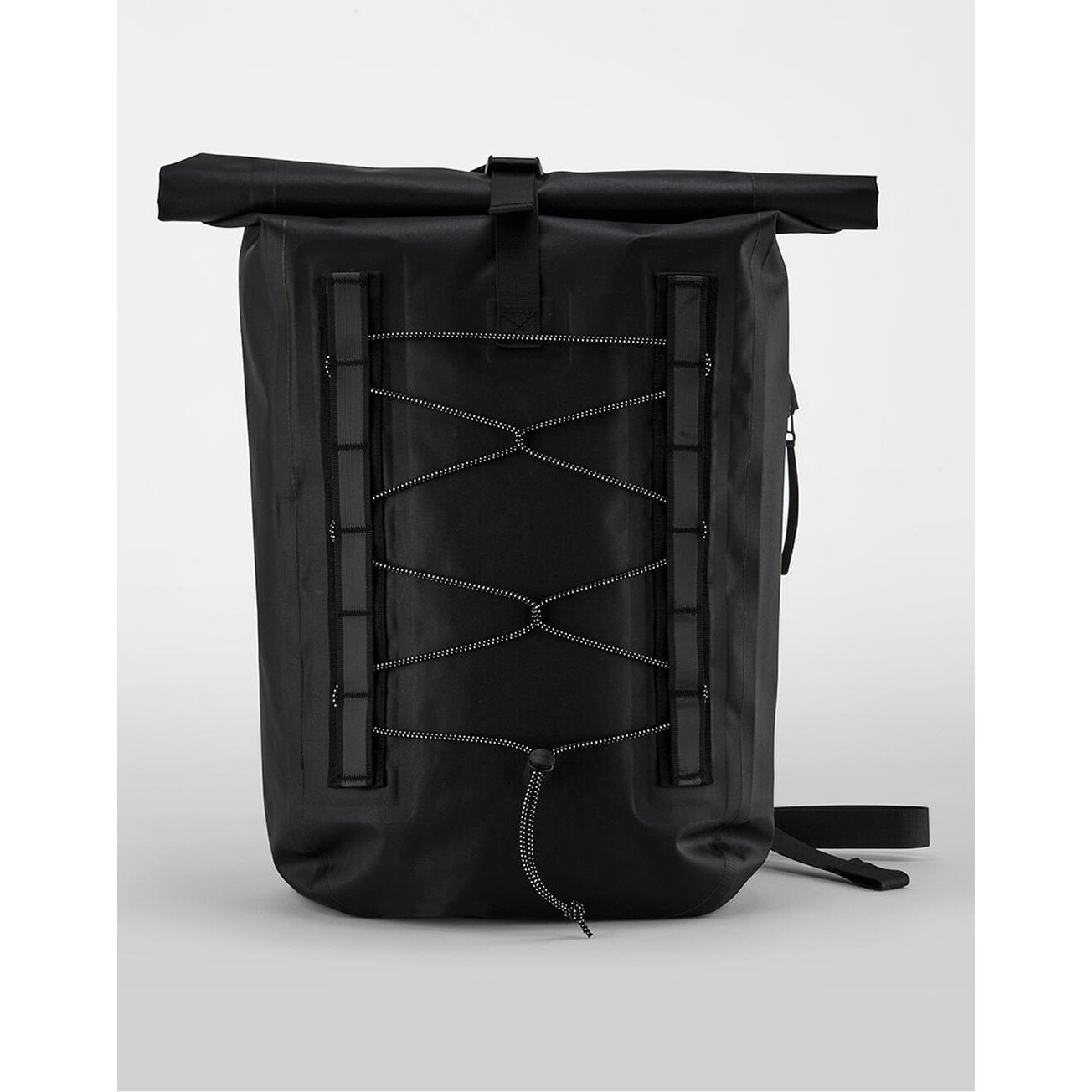100% poliéster (reciclado, 600d). tela impermeable. correas acolchadas y ajustables para los hombros. cierre enrollable. compartimento principal impermeable. bucles de fijación de correas con detalles reflectantes para fijación elástica frontal. bolsillo lateral con cremallera. etiqueta extraíble para facilitar el cambio de marca. capacidad: 18 litros. dimensiones: 31x46x12,5 cm. máx. área de impresión: 14x7cm.
