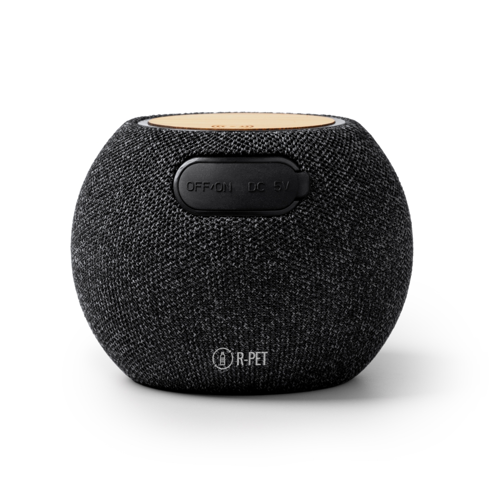 altavoz inalámbrico de forma redonda fabricado con cuerpo de bambú y poliéster reciclado rpet, ofreciendo una potencia de 5w. además, incorpora un cargador inalámbrico de 15w para mayor funcionalidad. dispone de conexión tipo c y viene con el cable incluido. todo se presenta en una caja con diseño ecológico, ideal para quienes valoran la sostenibilidad y el diseño elegante.