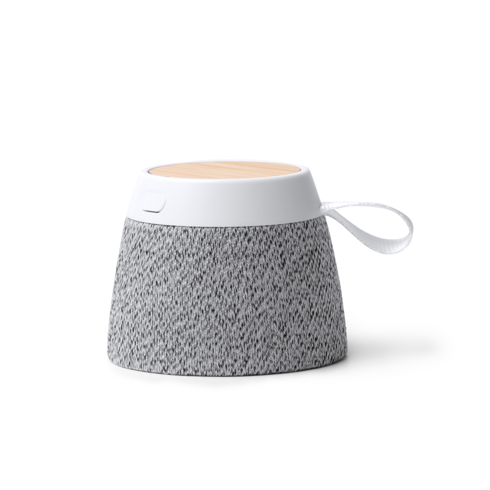 altavoz inalámbrico con cuerpo elaborado en bambú y tejido en rpet con potencia 5w y con batería con capacidad 300mah. cuenta con salida de audio mediante conexión bluetooth y manos libres, además incluye un anillo magnético que lo convierte en soporte para smartphone haciéndolo más versátil en su uso. incorpora un asa de transporte.