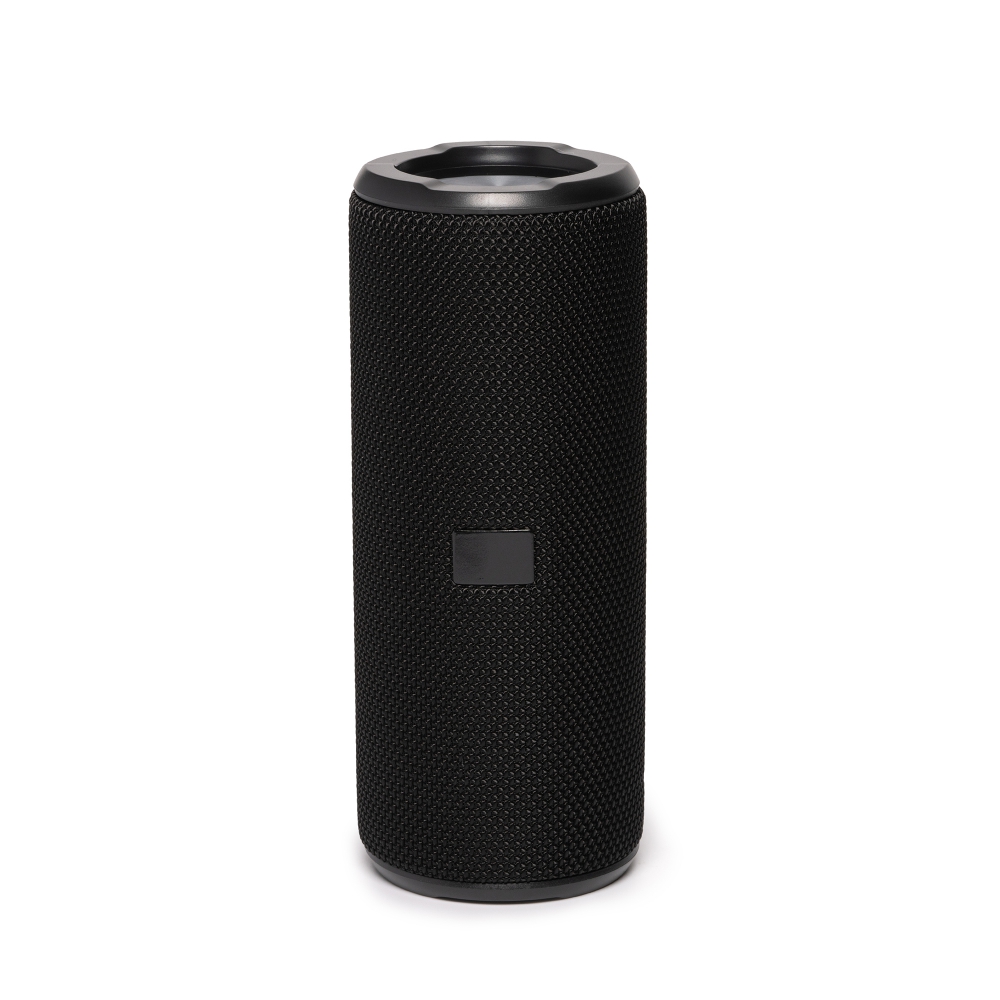 altavoz inalámbrico de diseño con acabado tejido premium. membrana transparente con 6 modos de luz led. potencia 10w. conexión tipo c. incluye resistente asa de transporte y placa especial para marcaje láser. batería recargable de larga duración. cable incluido.