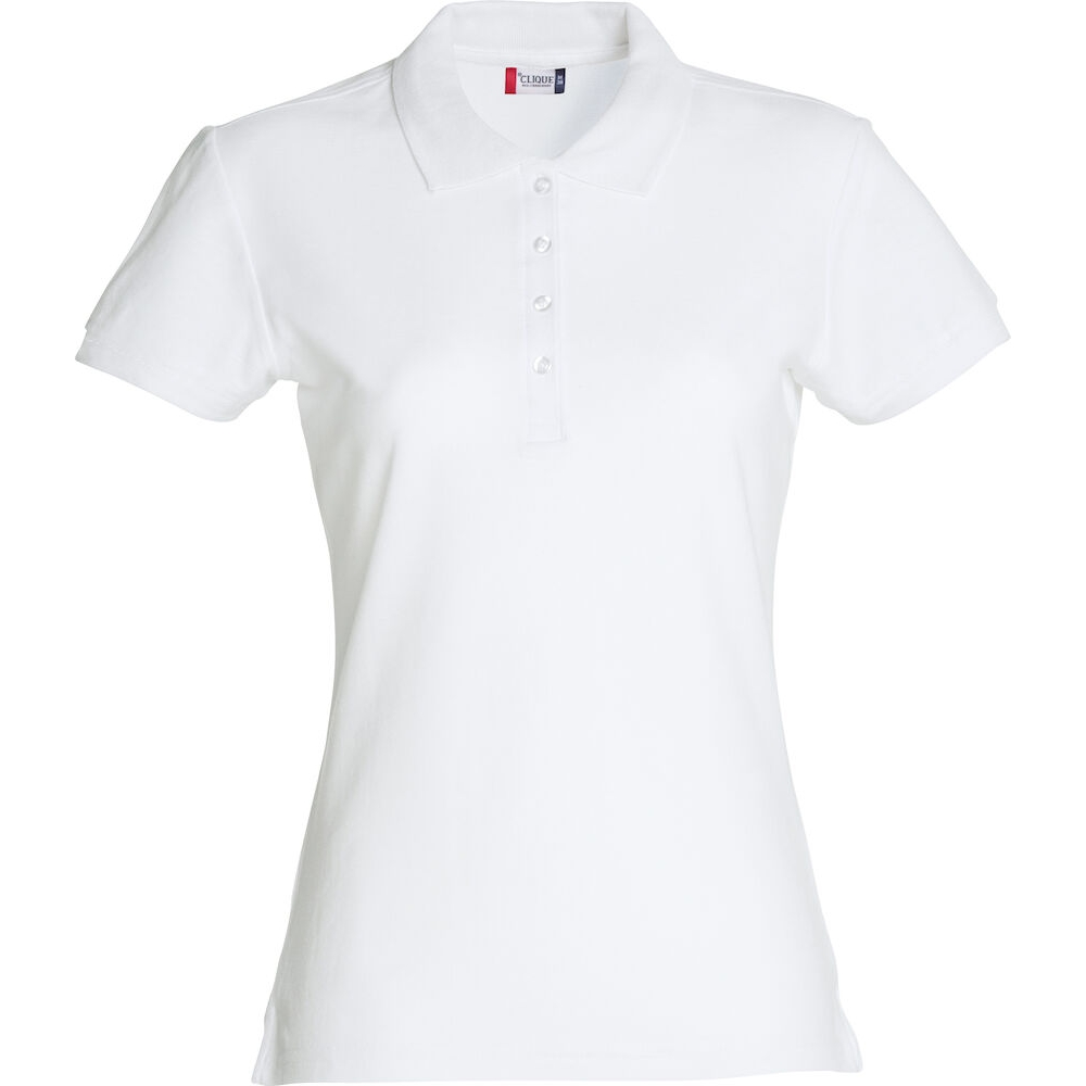 polo piqué de manga larga básico para uso diario. aberturas laterales y tres botones a tono. versión femenina con cuatro botones.