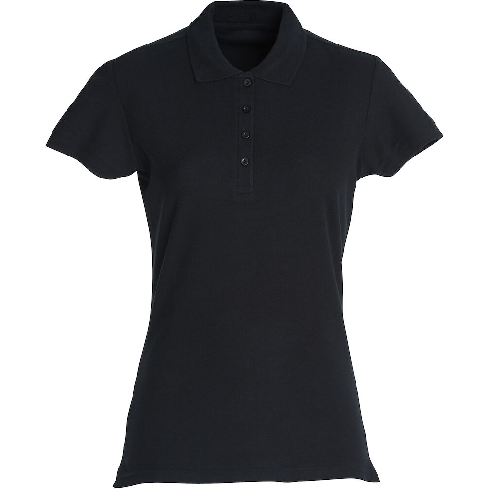 polo piqué de manga larga básico para uso diario. aberturas laterales y tres botones a tono. versión femenina con cuatro botones.