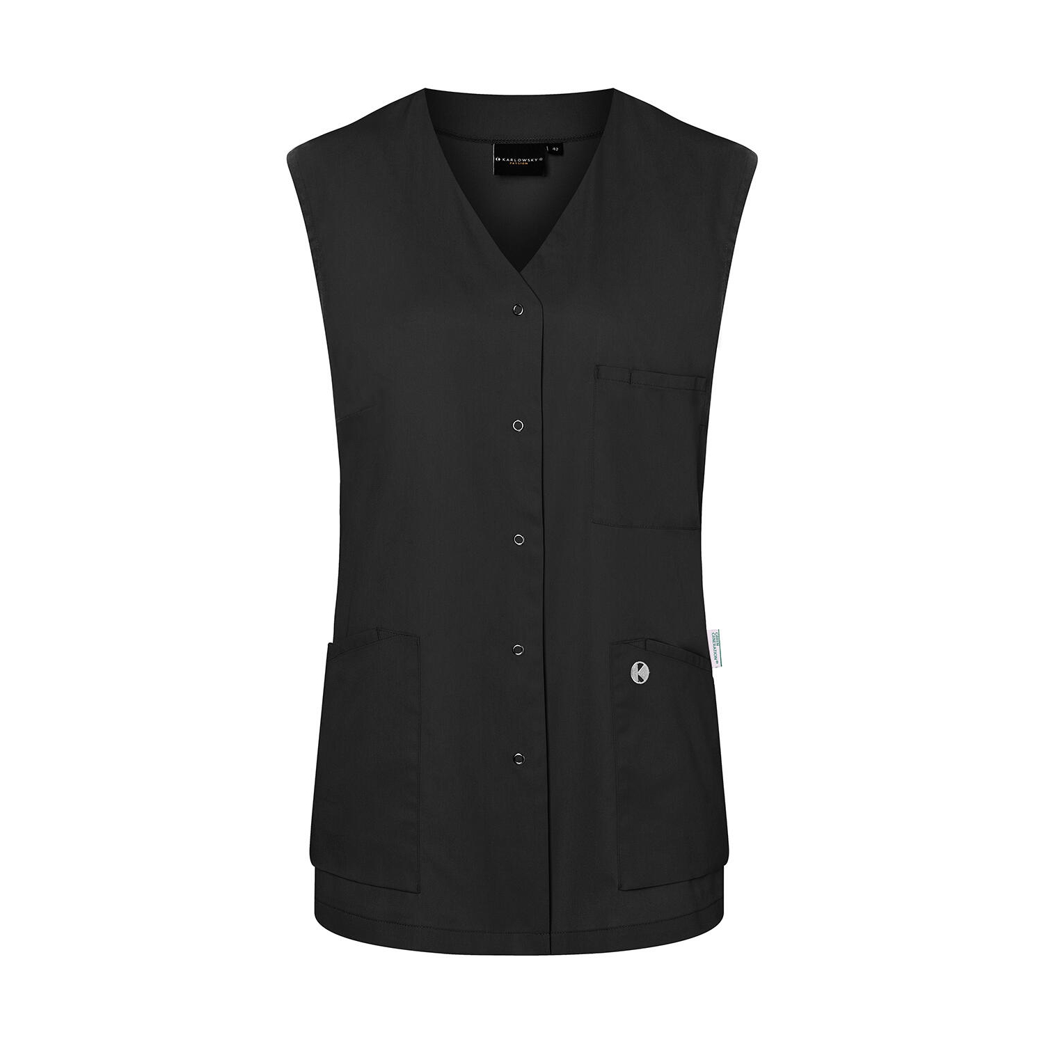 150 g/m². 65% poliéster (reciclado), 35% algodón. tejido ligero. no destiñe, fácil de cuidar, sostenible. corte ligeramente entallado. bolsillo en el pecho a la izquierda con compartimento para bolígrafo. bolsillos laterales con compartimento interior oculto a la derecha. presilla en el bolsillo lateral para sujetar un llavero. 5 botones de presión. lavable hasta 95°c. limpieza en seco.