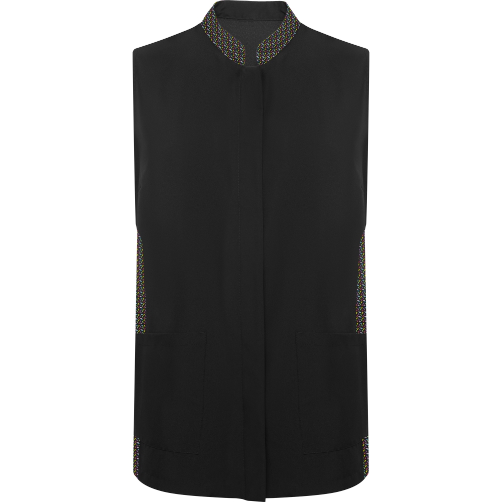 bata de mujer desmangada.· cuello mao. · cierre central con botones automáticos ocultos. · costadillos laterales y pinzas de pecho. · dos bolsillos frontales de parche.