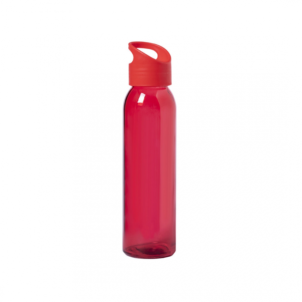 bidón de 470ml de capacidad. fabricado con cuerpo de cristal y disponible en variada gama de colores. tapón a rosca en pp, libre de bpa, a juego. presentado en caja individual de atractivo diseño.