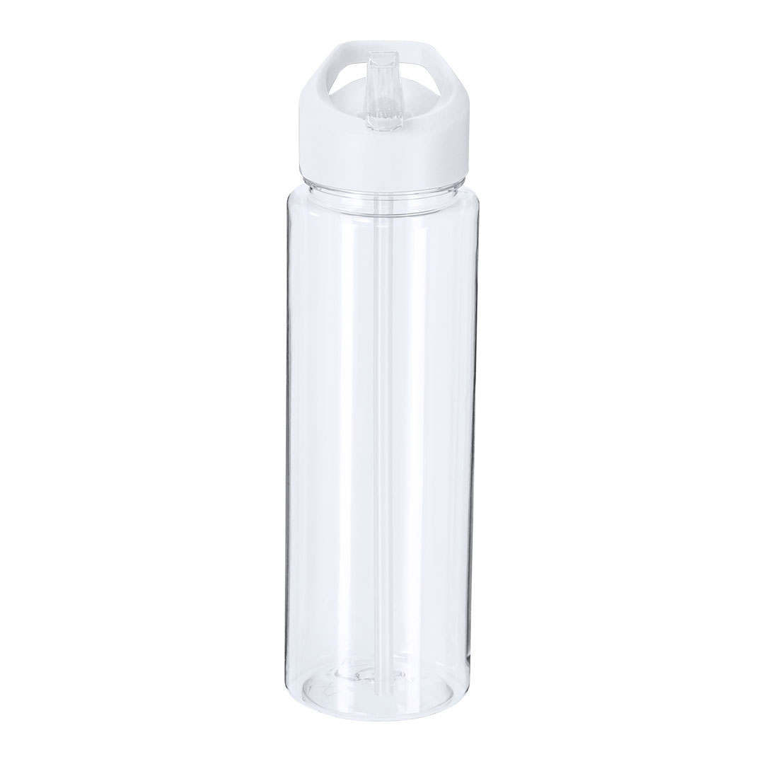 bidón fabricado en rpet de 750 ml de capacidad con sistema de fácil apertura con dosificador de pajita y asa de transporte a juego. libre de bpa.el material rpet se elabora a partir de plástico reciclado, para así fomentar la reutilización de residuos plásticos y ayudar a la sostenibilidad del planeta.