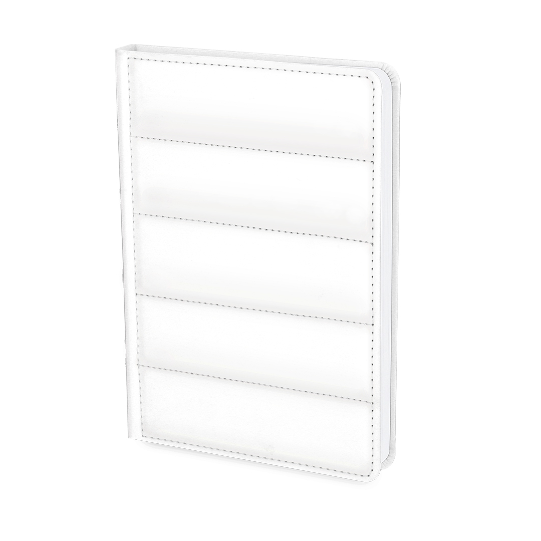 bloc de notas a5 con cubiertas rígidas y sofisticado diseño acolchado. fabricado en suave pu. incluye 110 hojas con disposición a rayas.