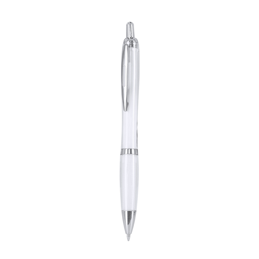 bolígrafo de mecanismo pulsador en resistente rpet. fabricado en elegante diseño con accesorio plateado. con pulsador, clip y punta en combinación. en tinta azul.