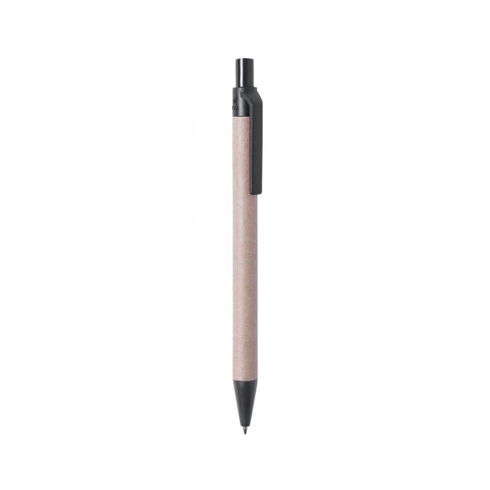 bolígrafo de línea nature con mecanismo pulsador. combinación de cuerpo en cartón reciclado de color natural y accesorios en pla -ãcido poliláctico-, que se obtiene a partir de recursos 100% naturales como el almidón de maíz, la yuca o la caña de azúcar, pudiendo convertirse en 100% compostable al final de su ciclo de vida útil. disponible en variada gama de colores, con tinta azul. distintivo pla en parte superior del bolígrafo.