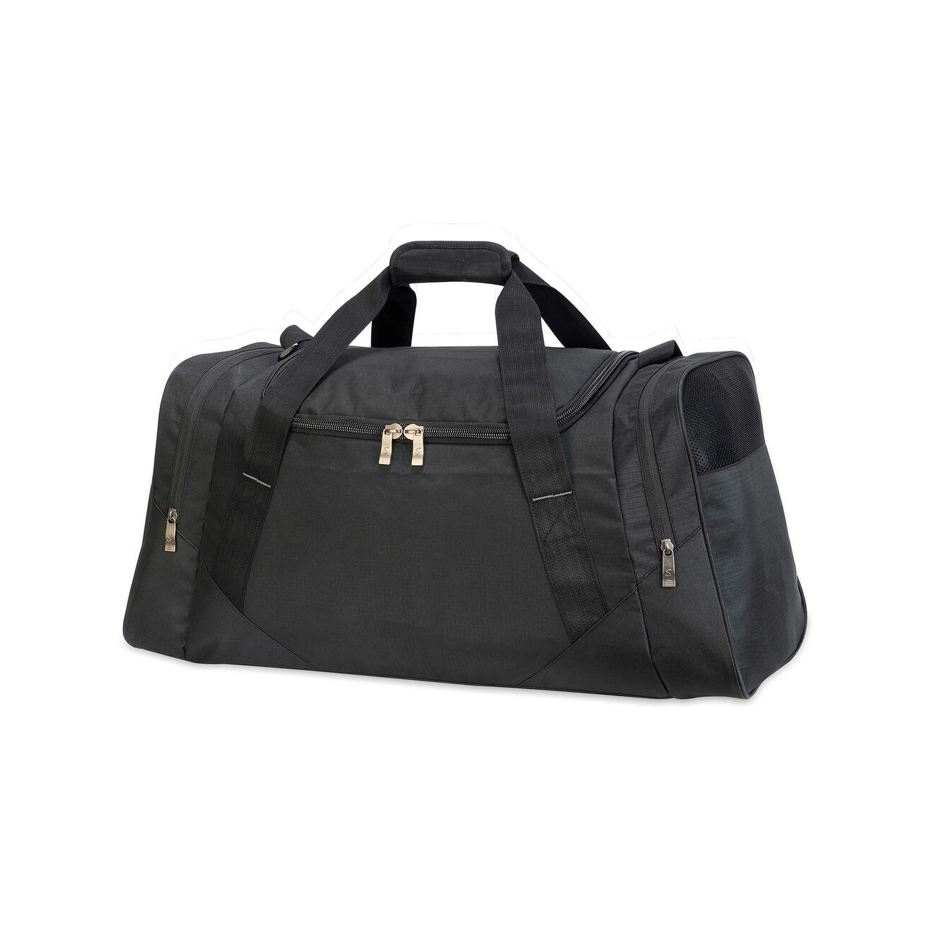 100% poliéster (600d). asas de mano reforzadas. correa de hombro ajustable. amplio compartimento principal con cremallera. dos bolsillos con cremallera, uno para zapatillas. capacidad: 67 litros. dimensiones: 67 x 36 x 29 cm. apropiada para serigrafía, impresión por transfer y bordado. bordado máximo: aro tubular 15. área de impresión: 20 x 18 cm.