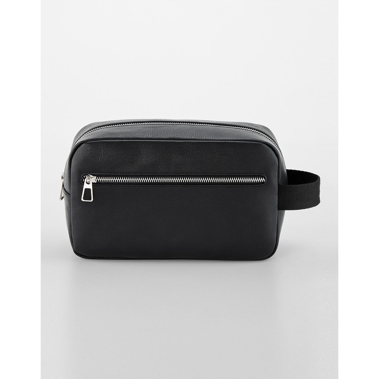 100% poliuretano (aspecto de cuero). forro: 100% poliéster (reciclado). asa de mano. compartimento principal con cremallera. bolsillo delantero con cremallera. bolsillo interior con cremallera, 2 bolsillos internos. etiqueta extraíble para facilitar el cambio de marca. capacidad: 4 litros. dimensiones: 25,5x16x9cm. máx. área de impresión: 15x7 cm.