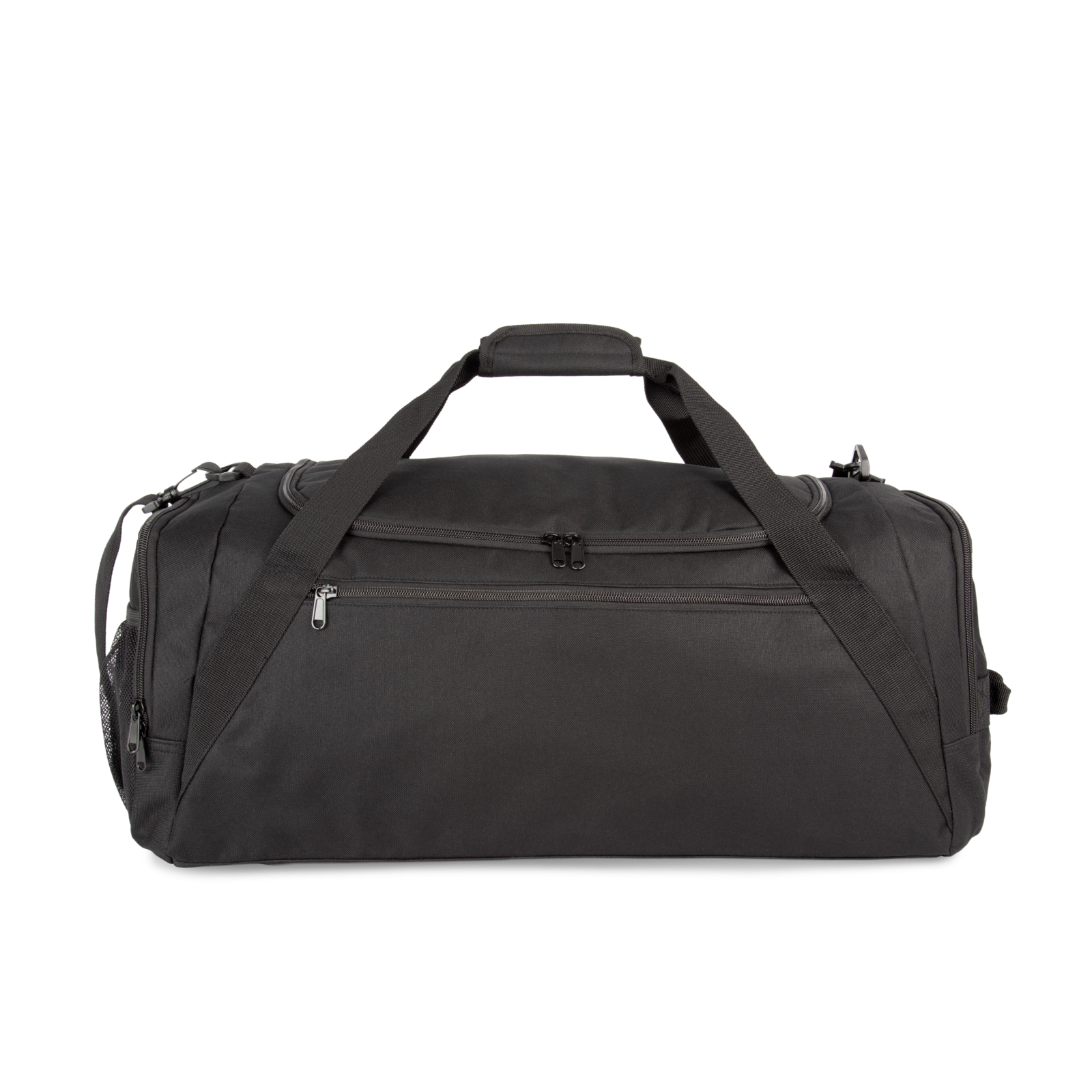 100% poliéster. bolsa de deporte y viaje. gran compartimento principal con amplia abertura con solapa y doble cremallera, bolsillo interior con cremallera para guardar el móvil o las llaves. bolsillos laterales grandes contrastados con doble cremallera. uno de los bolsillos laterales contiene una bolsa para zapatos con ojales y asa de transporte y el otro un bolsillo exterior de rejilla para artículos pequeños. asas cosidas al cuerpo de la bolsa. cierre autoadherente en las asas acolchados para mayor comodidad. bandolera ajustable y extraíble. bolsillo delantero grande con cremallera diseñado para facilitar la personalización. compartimento para calzado integrado con ojales de ventilación. bandolera cómoda y asas reforzadas con cierre autoadherente.bolsa deportiva.