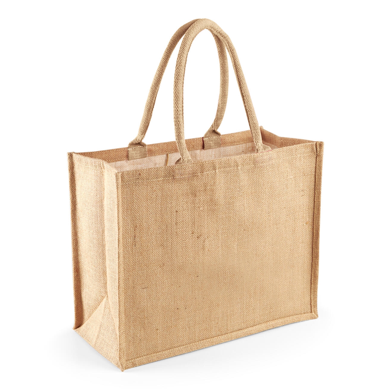 100% yute, laminado. asas de mano de algodón trenzado. capacidad: 21 litros. medidas: 42 x 33 x 19 cm.