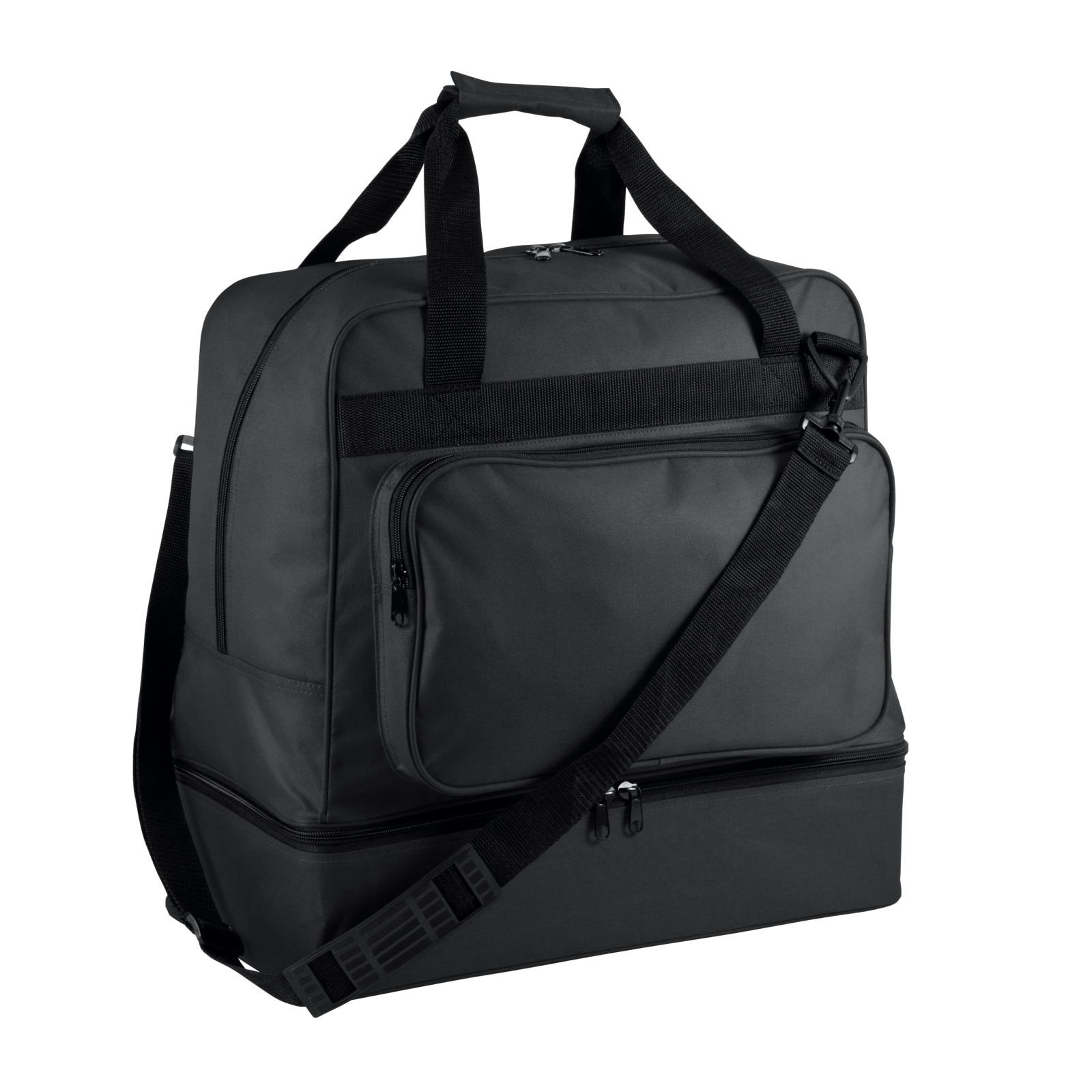 bolsa de deporte en poliéster 600d - 60 litros. base rígida extraíble de polipropileno con patas de plástico. bolsillo delantero con cremallera ideal para la personalización. tarjetero y correa de hombro extraíble con almohadilla de silicona. la base rígida viene incluida con la bolsa. bolsillo delantero con cremallera para facilitar la personalización. portatarjetas y correa de hombro desmontable.bolsa deportiva.