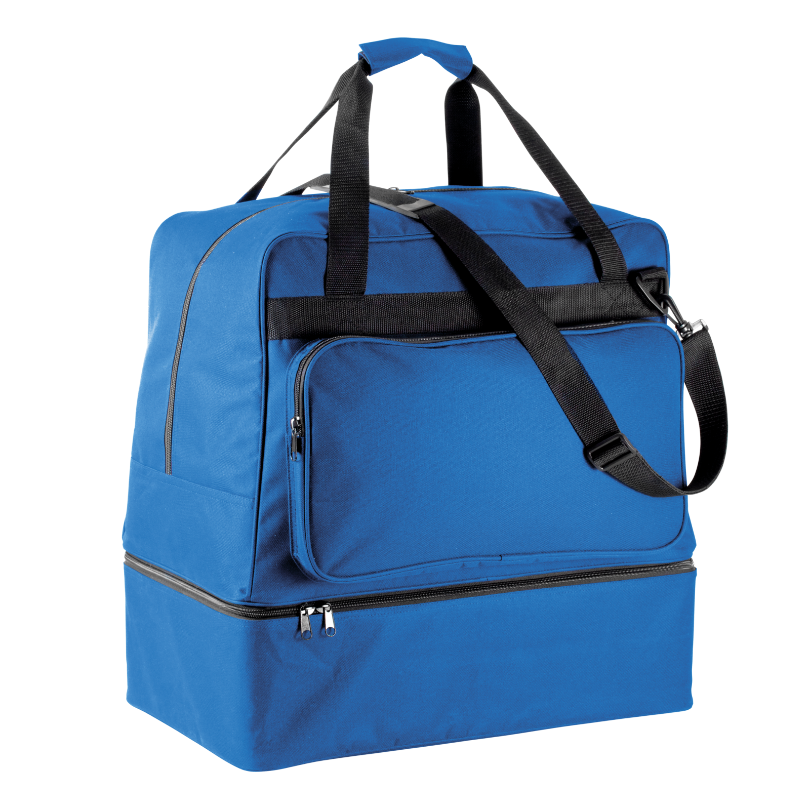 bolsa de deporte en poliéster 600d - 90 litros. base rígida extraíble de polipropileno con patas de plástico. bolsillo delantero con cremallera ideal para la personalización. tarjetero y correa de hombro extraíble con almohadilla de silicona. la base rígida viene incluida con la bolsa. bolsillo delantero con cremallera para facilitar la personalización. portatarjetas y correa de hombro desmontable.bolsa deportiva.