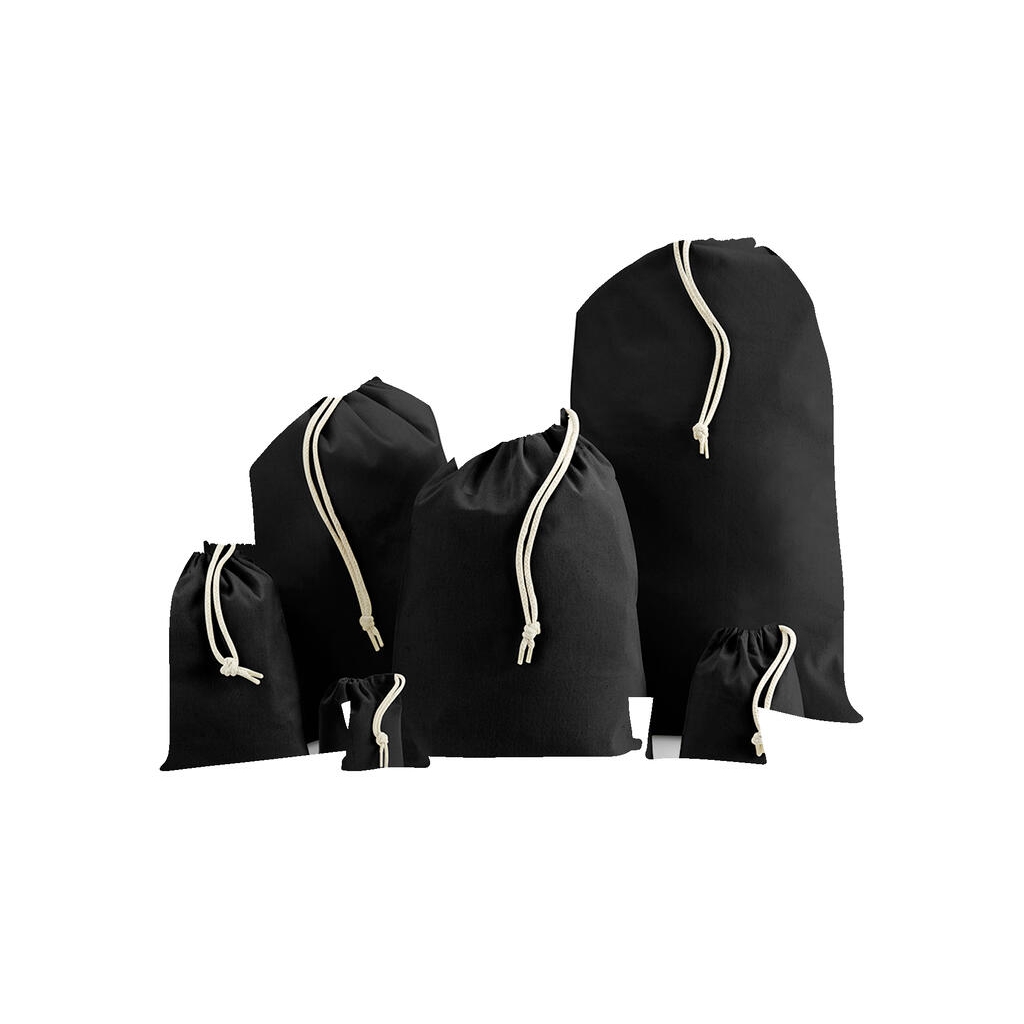 170 g/ m². 100% algodón reciclado. cordones de algodón reciclado. capacidad en litros: 0,25 (xxs), 1 (xs), 3 (s), 8 (m), 14 (l), 38 (xl). dimensiones en cm: 10x15 (xxs), 14x20 (xs), 25x30 (s), 30x45 (m), 40x50 (l), 49x75 (xl).