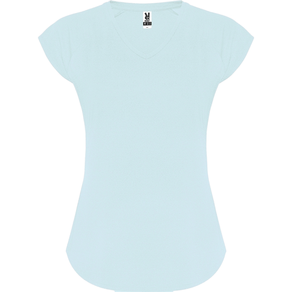 camiseta técnica multi-deporte de mujer manga corta estilo manga ranglan. cuello pico. tejido poliéster con tacto algodón. corte entallado.