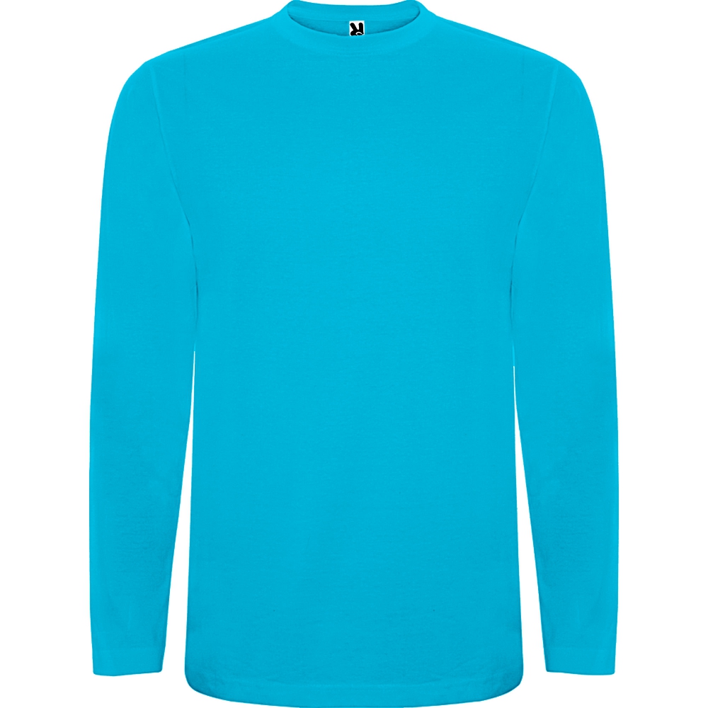 camiseta de manga larga, tejido tubular y cuello redondo de 4 capas. cubrecosturas de refuerzo en cuello y hombro. sin puños.