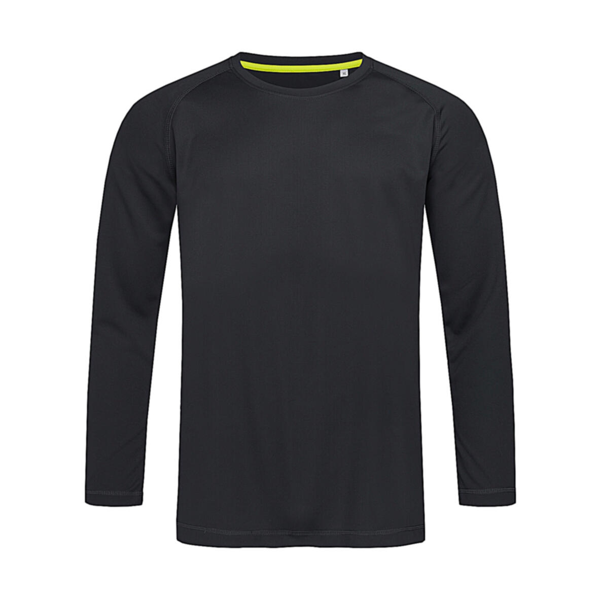 140 g/m². 100% poliéster (active-dry°). tejido elástico. mangas largas raglán. cuello encintado en color contrastado (cyber yellow). costura plana decorativa. costuras laterales. corte normal.