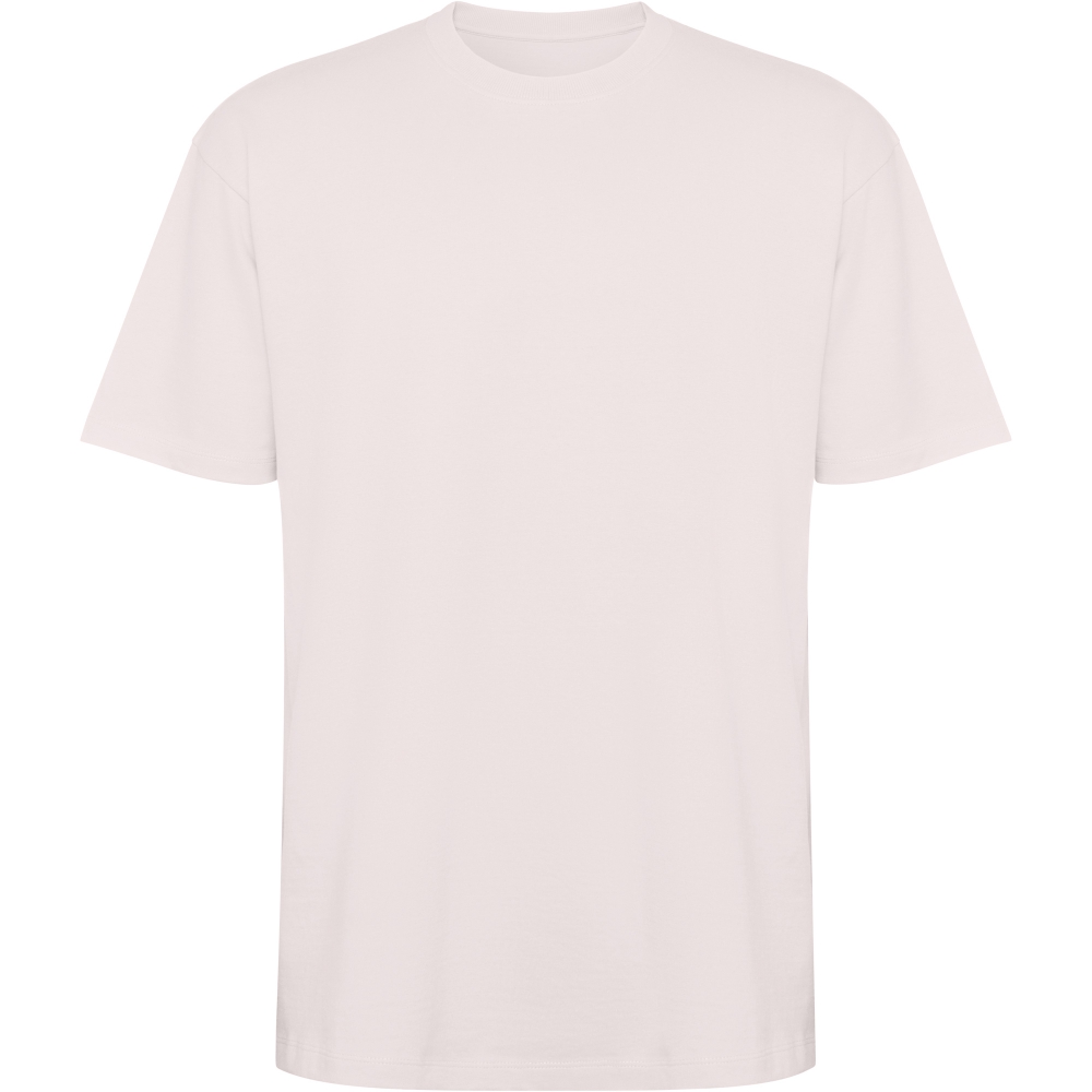 camiseta de manga corta estilo oversize. cuello redondo ribeteado en canalé 2x1 con cubre costuras a tono. costuras laterales. doble costura ancha en manga y bajo.