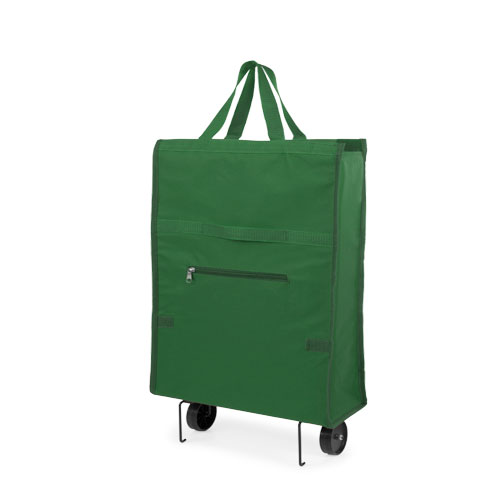 carro de compra plegable en resistente poliéster 600d de variada gama en vivos colores. con asas de nylon reforzadas a juego, bolsillo de cremallera frontal a juego y soportes metálicos. plegado de pequeño tamaño.