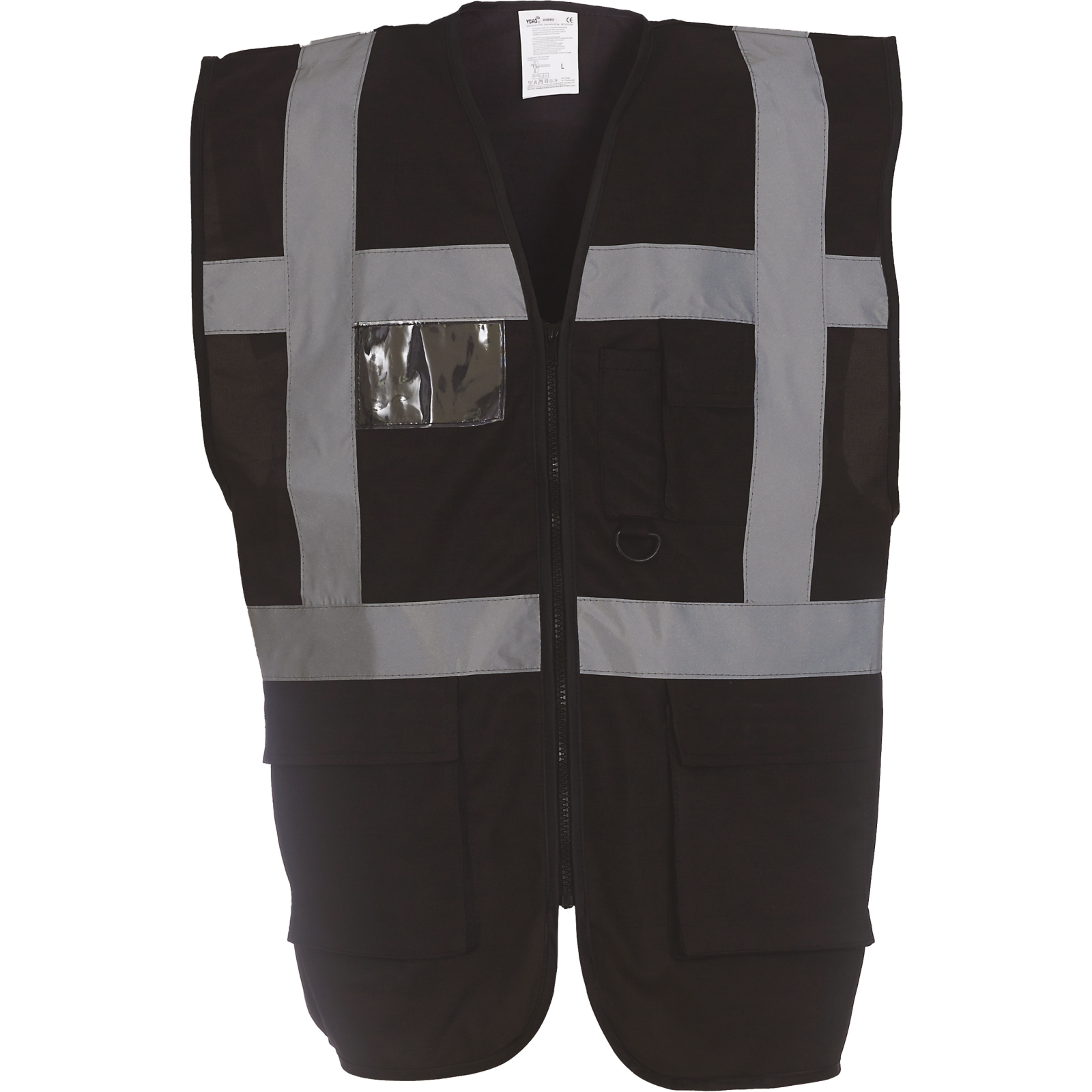 100% poliéster. tiras reflectantes de 5cm de ancho alrededor del cuerpo y una en cada hombro. bolsillo para teléfono móvil o walkie-talkie en el lado izquierdo, parte delantera. cierre con cremallera en todo el largo. dos bolsillos inferiores con solapas accesibles desde la parte superior y por los lados, bolsillos para bolígrafos y llavero, bolsillo para identificación en el lado derecho, gran superficie para decoración en la parte trasera. cumple con la norma: - en iso 20471:2013 categoría 2: solo hi-vis yellow, hi-vis orange y hi vis yellow/hi vis orange. - en iso 20471:2013 categoría 1: solo paramedic green/hi-vis yellow, royal blue/hi-vis yellow, red/hi-vis yellow, hi-vis yellow/black, hi-vis orange/black, hi-vis yellow/navy, hi-vis orange/navy, hi-vis yellow/grey, orange/grey y yellow/purple. en 1150:1999 pass : solo lime. cuidados: lavar a 40° c, no usar lejía, prohibido planchar y secar en secadora. bolsillo para teléfono móvil o walkie-talkie amplia superficie para personalización en la parte traseracuello de pico.sin mangas.chaleco de seguridad/ropa de trabajo.
