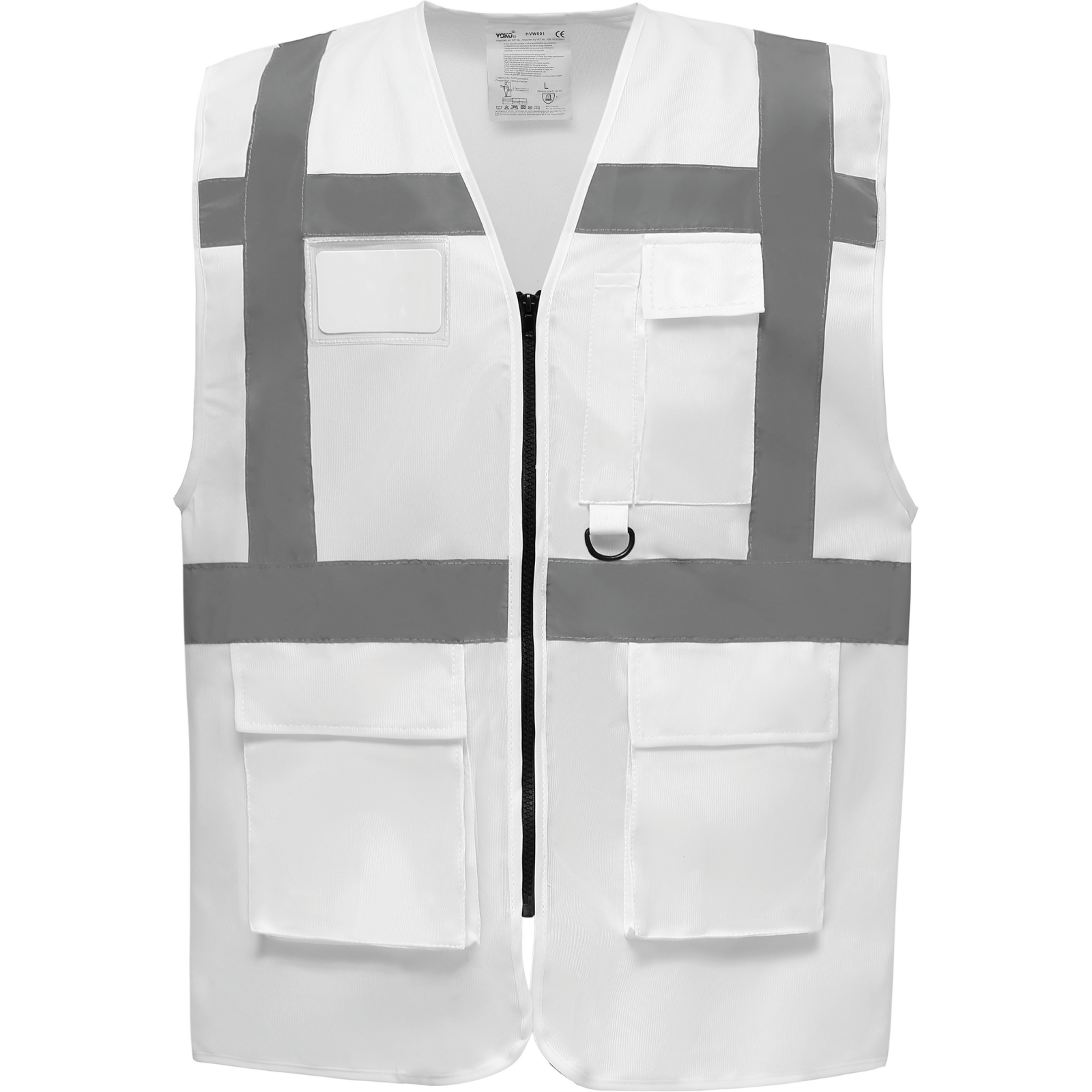 100% poliéster. tiras reflectantes de 5cm de ancho alrededor del cuerpo y una en cada hombro. bolsillo para teléfono móvil o walkie-talkie en el lado izquierdo, parte delantera. cierre con cremallera en todo el largo. dos bolsillos inferiores con solapas accesibles desde la parte superior y por los lados, bolsillos para bolígrafos y llavero, bolsillo para identificación en el lado derecho, gran superficie para decoración en la parte trasera. cumple con la norma: - en iso 20471:2013 categoría 2: solo hi-vis yellow, hi-vis orange y hi vis yellow/hi vis orange. - en iso 20471:2013 categoría 1: solo paramedic green/hi-vis yellow, royal blue/hi-vis yellow, red/hi-vis yellow, hi-vis yellow/black, hi-vis orange/black, hi-vis yellow/navy, hi-vis orange/navy, hi-vis yellow/grey, orange/grey y yellow/purple. en 1150:1999 pass : solo lime. cuidados: lavar a 40° c, no usar lejía, prohibido planchar y secar en secadora. bolsillo para teléfono móvil o walkie-talkie amplia superficie para personalización en la parte traseracuello de pico.sin mangas.chaleco de seguridad/ropa de trabajo.