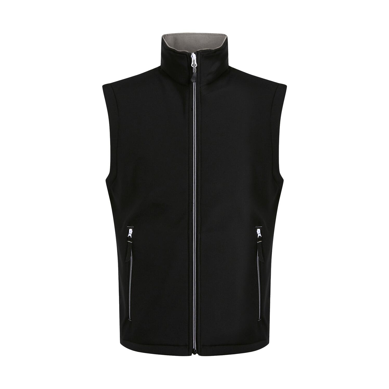100% poliéster (reciclado). tejido softshell con elasticidad mecánica. tejido exterior softshell imprimible repelente al viento y al agua. forro polar cálido. cremallera completa. bolsillos laterales con cremallera.