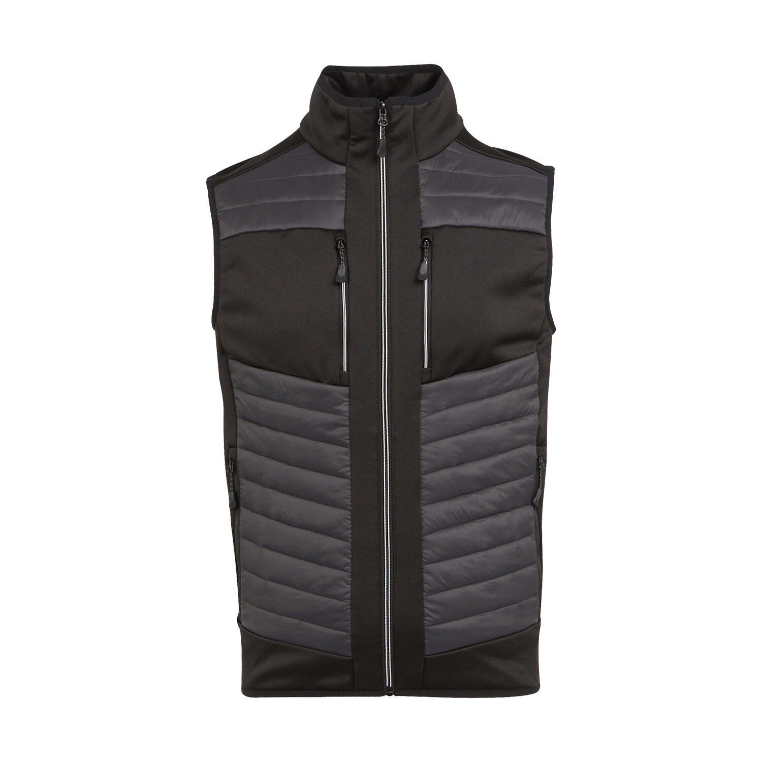 100% poliamida (20d). tejido ligero con acabado repelente al agua. tejido de punto elástico con reverso cálido extol. aislamiento warmloft (reciclado). cremallera completa. 2 bolsillos en el pecho con cremallera. espacio en la zona del pecho para decoración. bolsillos laterales con cremallera. detalle de estampado reflectante. ribete elástico en sisas, dobladillo y cuello.