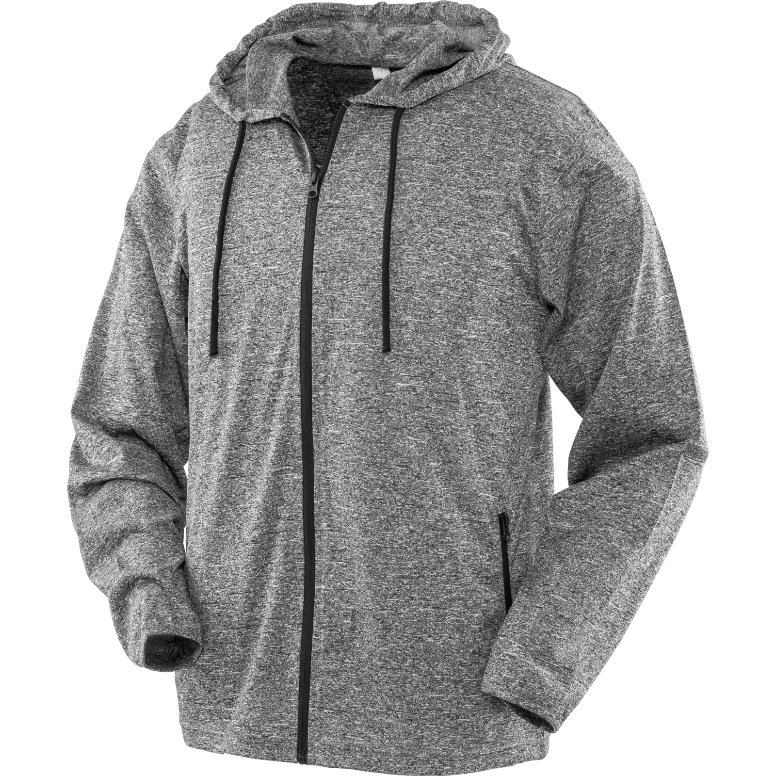 100% poliéster. muy ligera. material stretch en la capucha y los acabados. cierre con cremallera en la parte delantera y bolsillos laterales con cremallera. capucha con cordón de ajuste. puños y cintura no elásticos. ligera, agradable de llevar.manga larga.sudadera capucha y cremallera.
