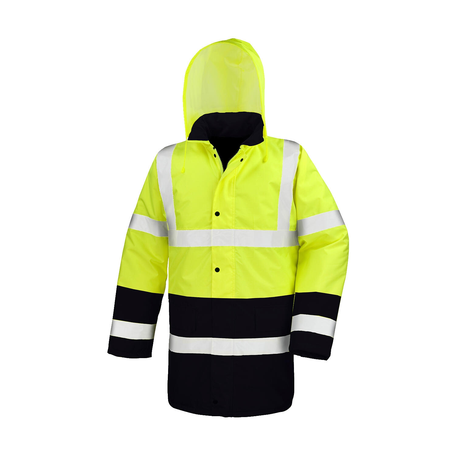 exterior: 100% poliéster (300d, oxford recubierto de pu). relleno: 160 g/m², 100% poliéster. forro: 100% poliéster (190t, acolchado brillante). en iso 20471: 2013 + a1-2016, clase 3. resistente al viento e impermeable (1000 mm). cuello levantado. capucha plegable con cordón ajustador. cremallera resistente de 2 vías con solapa de cierre a presión. grandes bolsillos cubiertos con solapa. bolsillo interior. 50 mm cosidos en cintas de seguridad. el panel inferior oscuro evita la suciedad. costuras totalmente selladas. listo para el rebranding (sin etiqueta). ris-3279-tom - clase 3 (naranja fluorescente / negro).