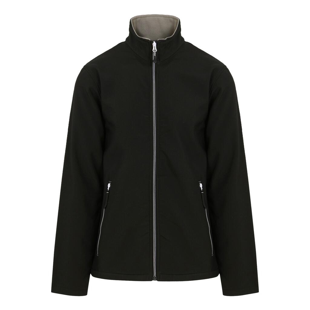 100% poliéster (reciclado). tejido softshell con elasticidad mecánica. tejido exterior softshell imprimible repelente al viento y al agua. forro polar cálido. mangas ajustadas. cremallera completa. bolsillos laterales con cremallera.