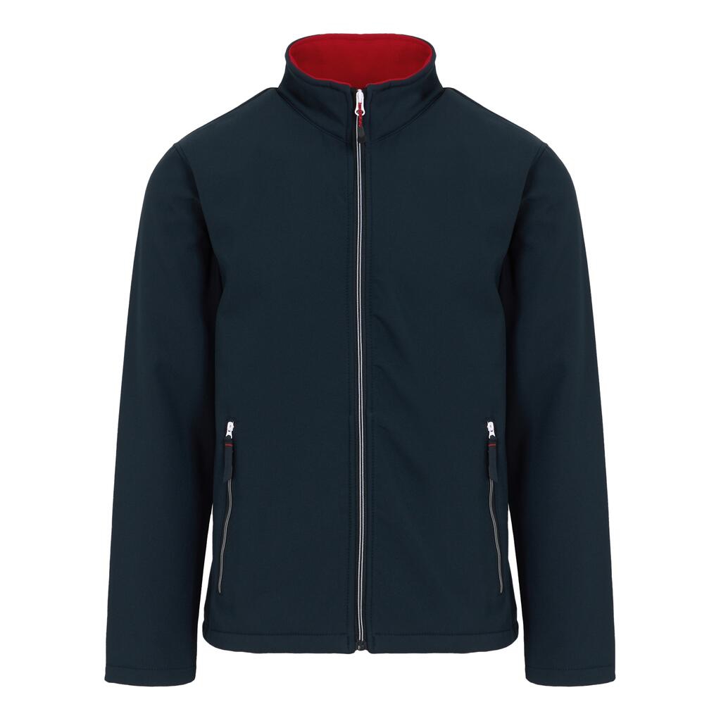 100% poliéster (reciclado). tejido softshell con elasticidad mecánica. tejido exterior softshell imprimible repelente al viento y al agua. forro polar cálido. mangas ajustadas. cremallera completa. bolsillos laterales con cremallera.