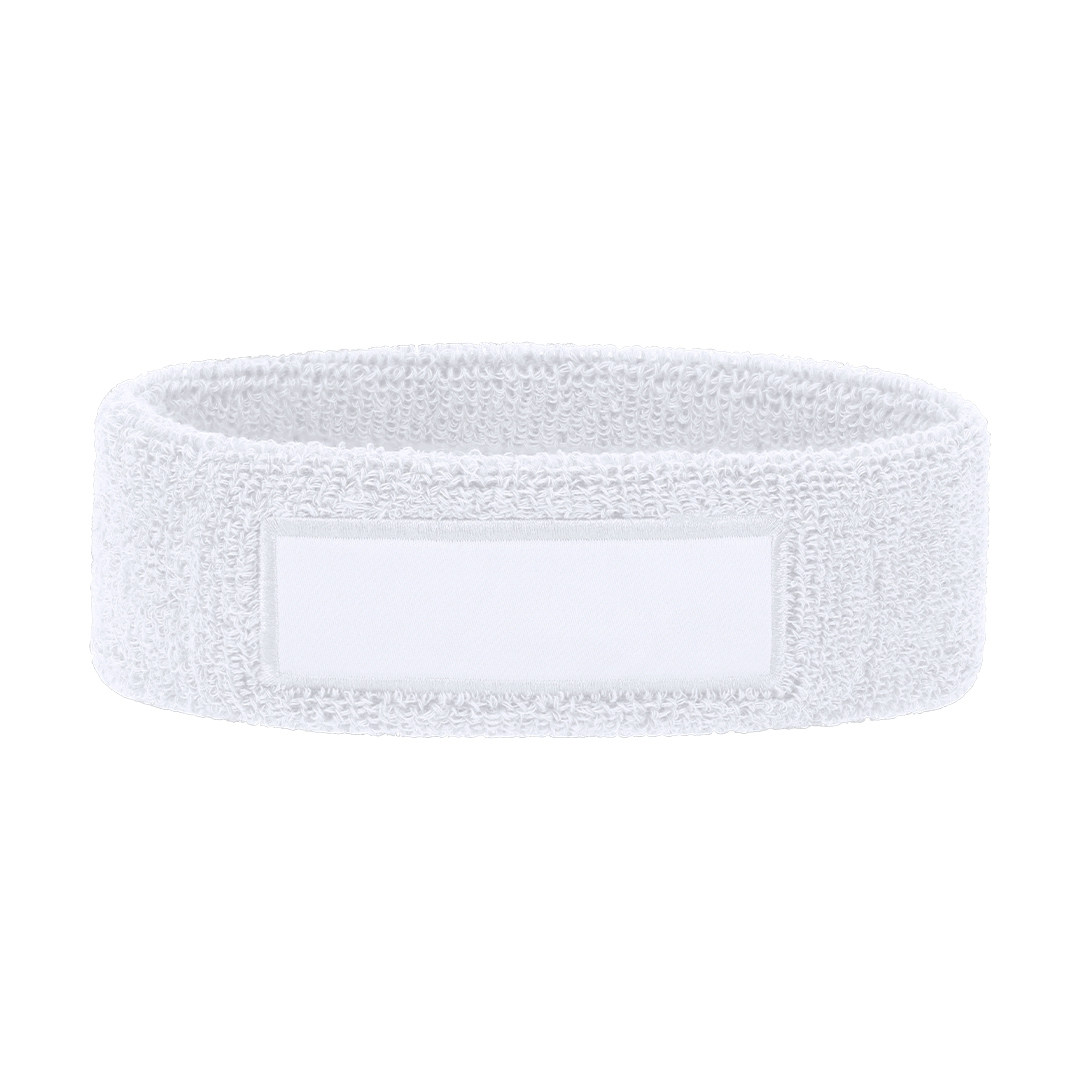 cinta de cabeza elástica en alta calidad, fabricada principalmente en material poliester elastáno. incluye un parche en el centro ideal para personalizar. diseñada para actividades deportivas y de ocio.