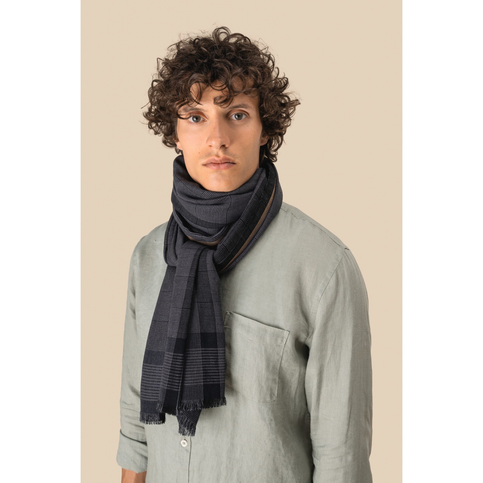 50% algodón, 50% viscosa. fular tejido con flecos y estampado a cuadros en tonos grises y negros, realzado con un discreto ribete beige en los extremos. al estar tejidos de forma artesanal, nuestros fulares pueden presentar ligeras variaciones de color entre una pieza y otra, lo que demuestra la autenticidad de su elaboración. estampado a cuadros sobrio. tejido fluido y agradable de llevar.bufanda, pañuelo, fular chech.