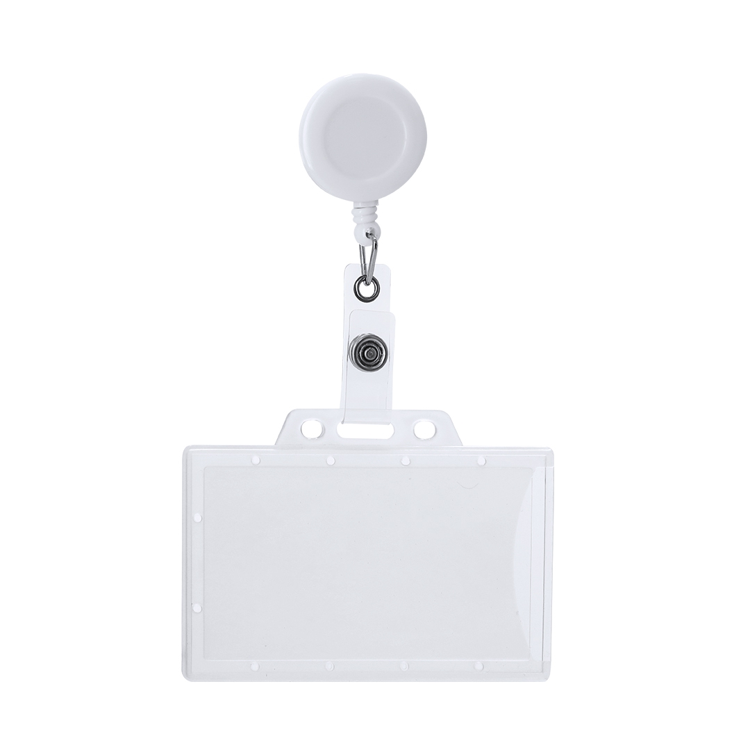 identificador lanyard extensible. portatarjetas en rígido ps transparente. cuerda extensible de hasta 70 cm.