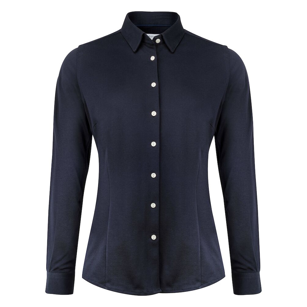 tiene el aspecto de una camisa de vestir clásica, pero en realidad es una camisa de punto.