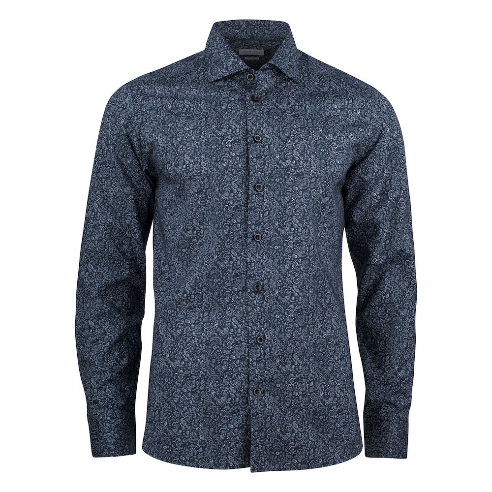 elegante, atrevida y moderna camisa con estampado de cachemir en tejido popelin súper ligero. camisa elegante con moderno y suave cuello con botones ocultos y tejido easy care.