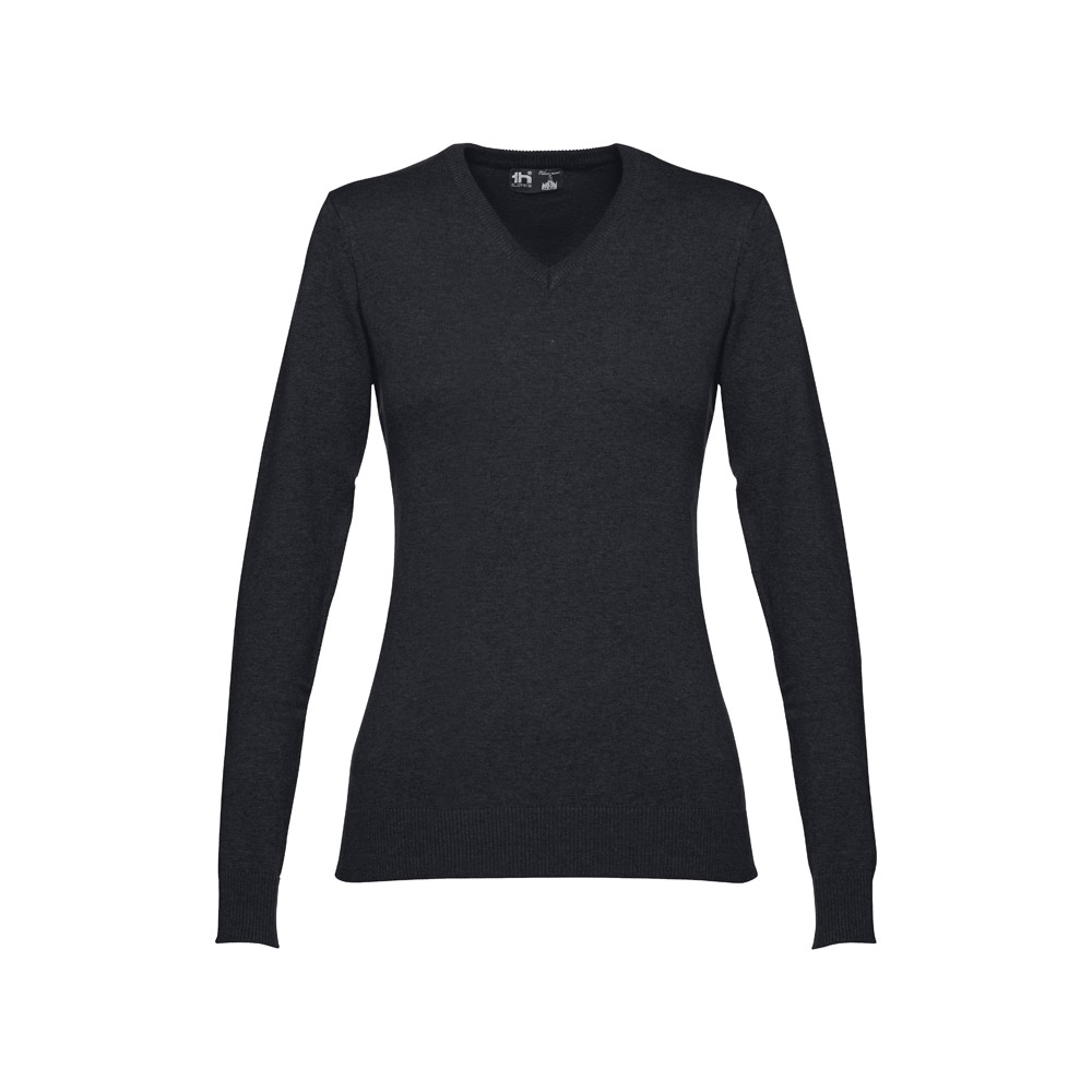 jersey con escote de pico para mujer compuesto por 70% de algodón y 30% de poliamida (220 g/m²). lleva el cuello, puños y bajo en canalé, con mangas terminadas en ´fully-fashion´. tallas: s, m, l, xl, xxl