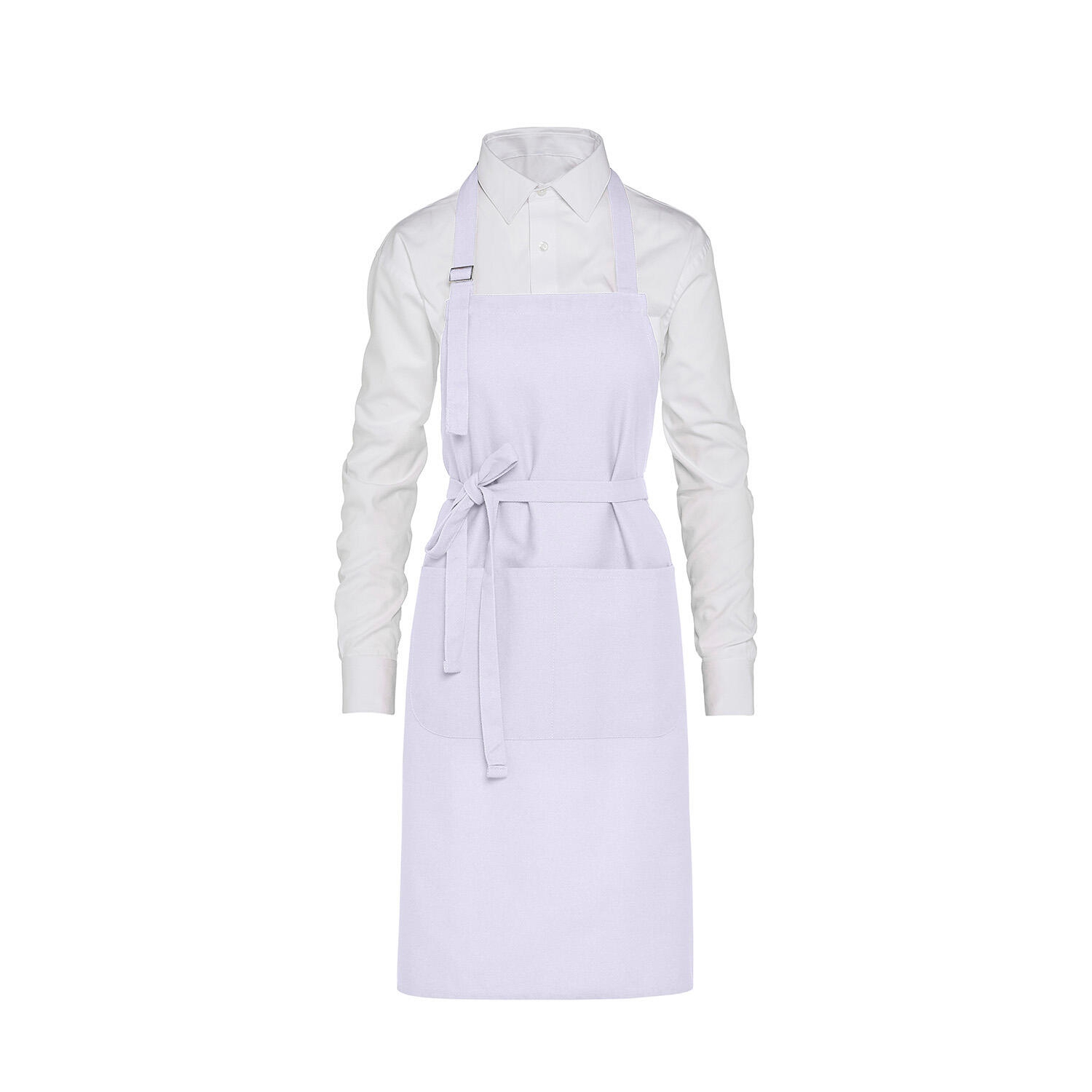 280 g/m². 100% algodón. lona de sarga fina. colorfast, solidez del color. cuidado fácil. colorante teñido reactivo resistente. hebilla de ajuste del cuello. se ata a la cintura con costuras rematadas. gran bolsillo central cosido con 2 compartimentos (40 x 20 cm). medidas: 85 x 71 cm. lavable hasta 60°c.
