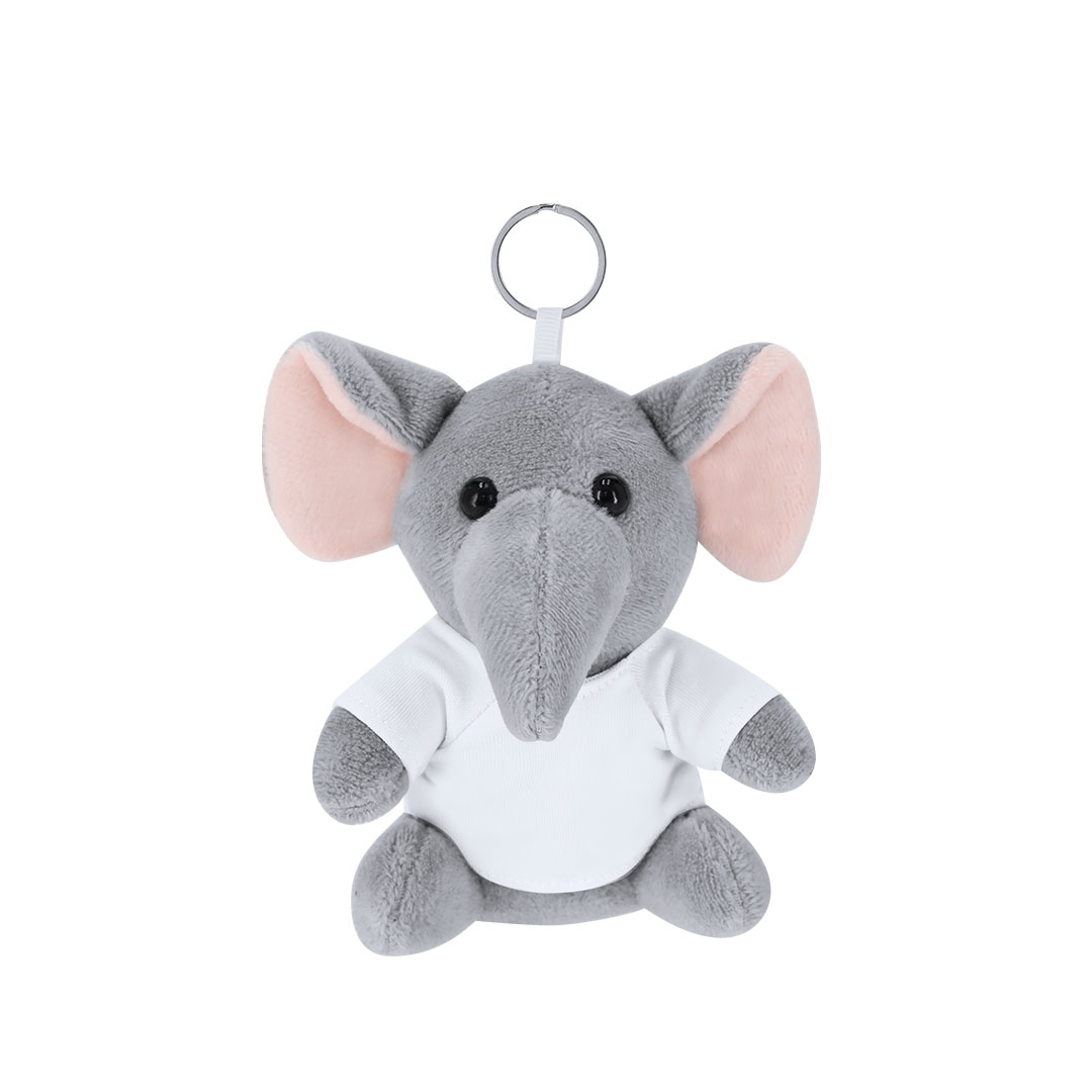llavero elefante de peluche con camiseta personalizable con anilla metálica para fácil transporte, ideal para sublimación.