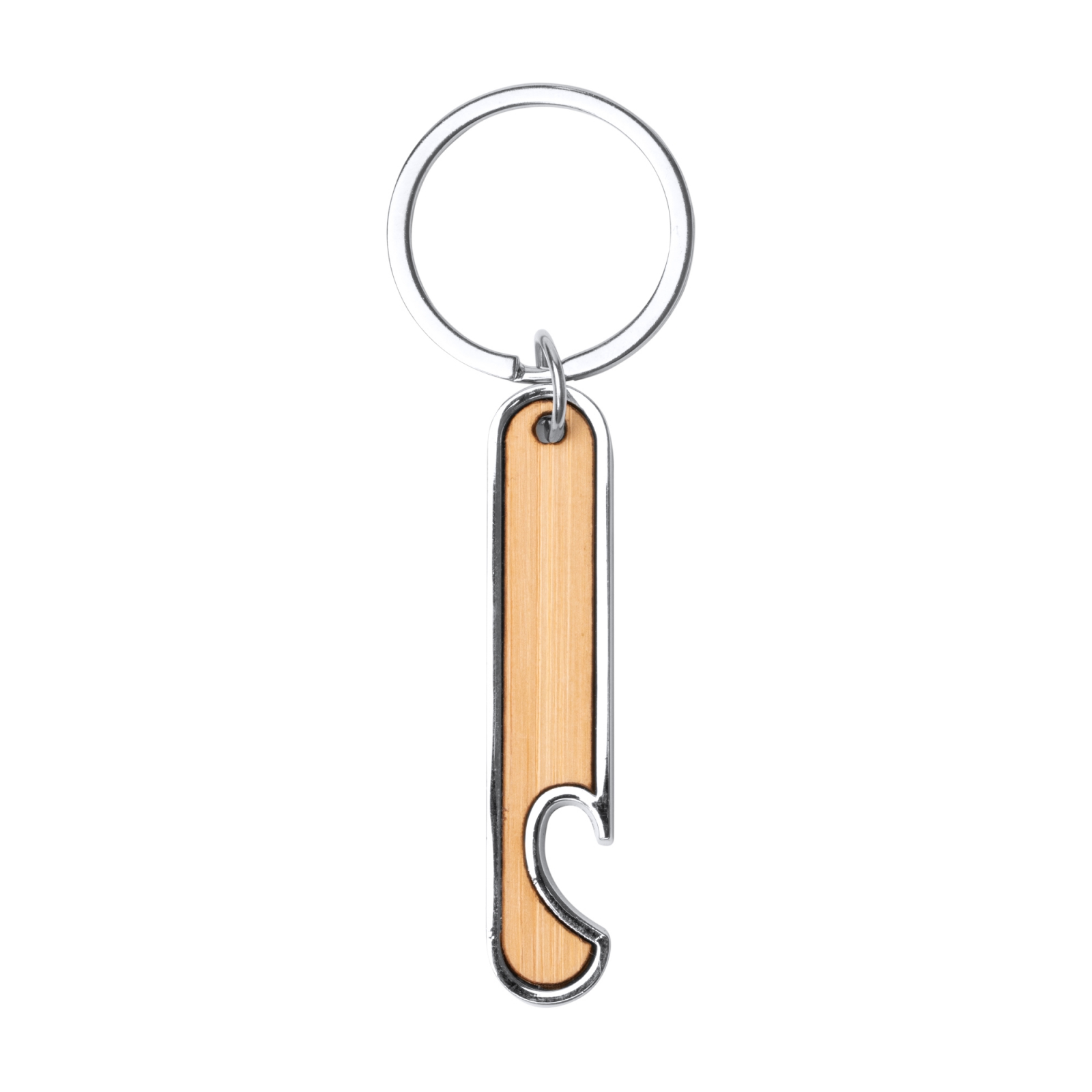 llavero abridor elaborado en acero con cuerpo en bambú.