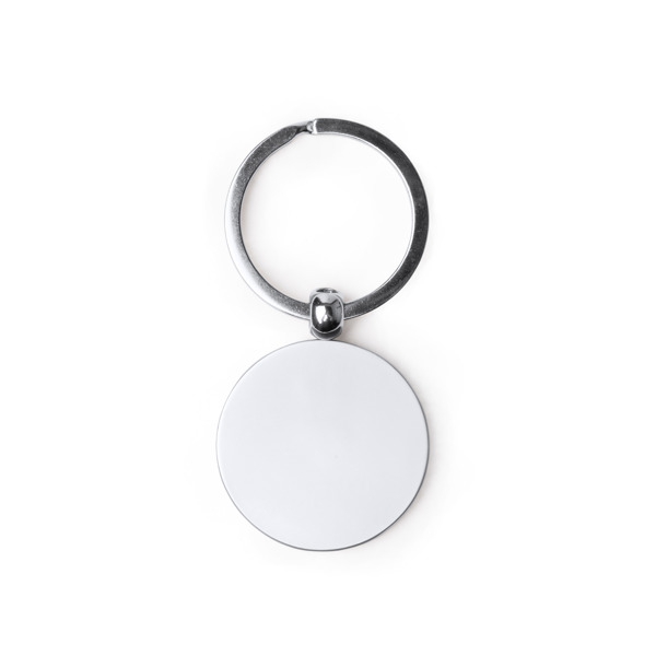 llavero metálico giratorio con cuerpo en acabado mate con una amplia superficie para marcaje. incluye anilla metálica con acabado brillante.