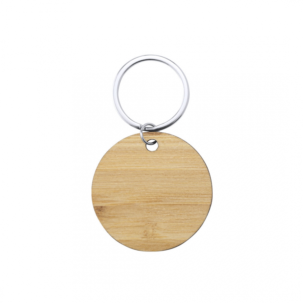 llavero de línea nature fabricado en bambú, disponible en diseños circular, cuadrado y rectangular.