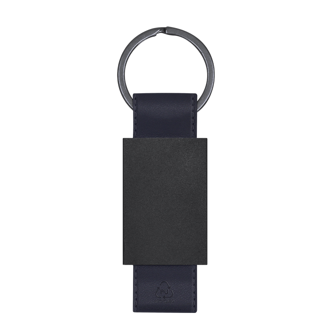 llavero de divertido diseño con cinta de pu reciclado. con cuerpo negro en acabado mate.