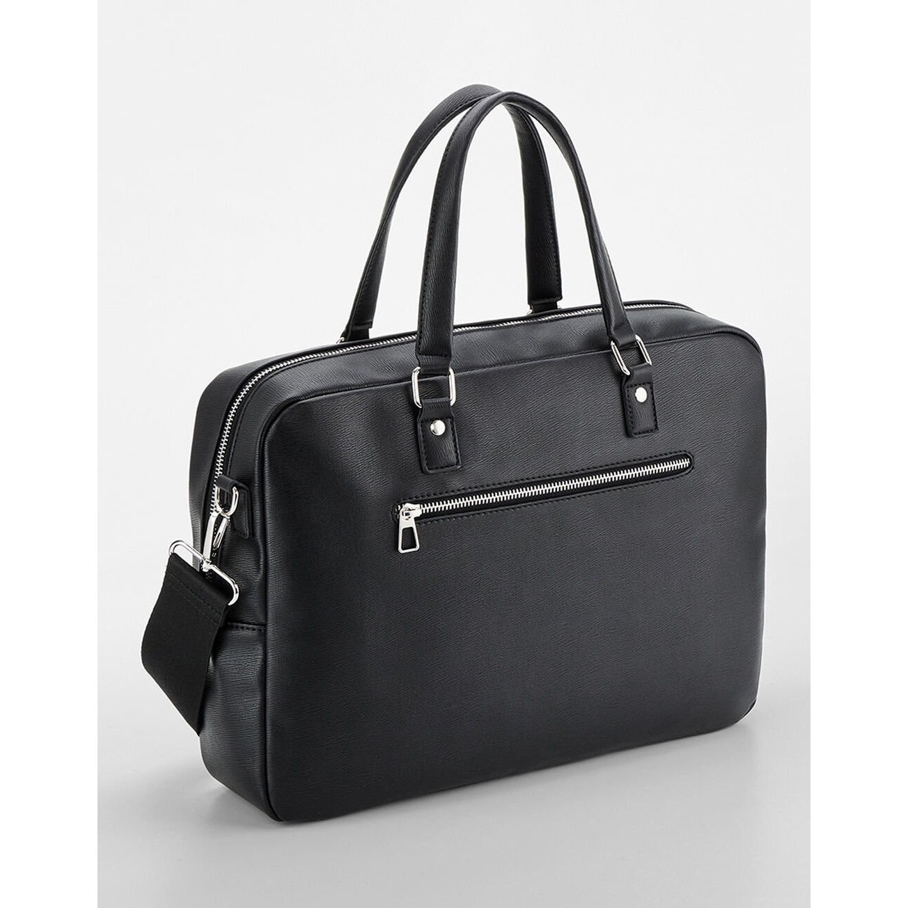 100% poliuretano (aspecto de cuero). forro: 100% poliéster (reciclado). correa de hombro ajustable y desmontable. apertura con cremallera de 2 vías para fácil acceso. compatible con portátiles de hasta 16. bolsillo delantero con cremallera. portabotellas interno y múltiples bolsillos internos. etiqueta extraíble para facilitar el cambio de marca. capacidad: 11 litros. dimensiones: 39x28x10cm. máx. bordado: aro de 15 tubulares. máx. área de impresión: 5x8 cm.