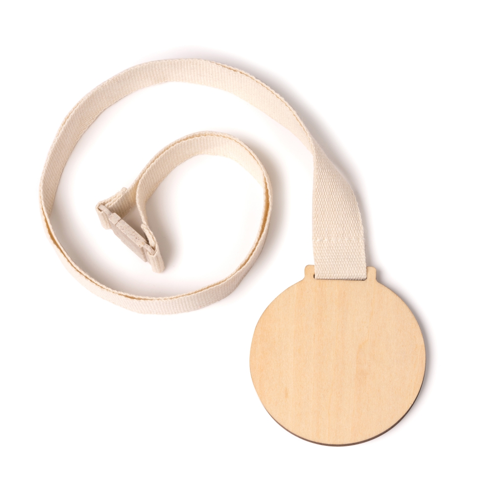 medalla realizada en bambú con cordón de algodón.